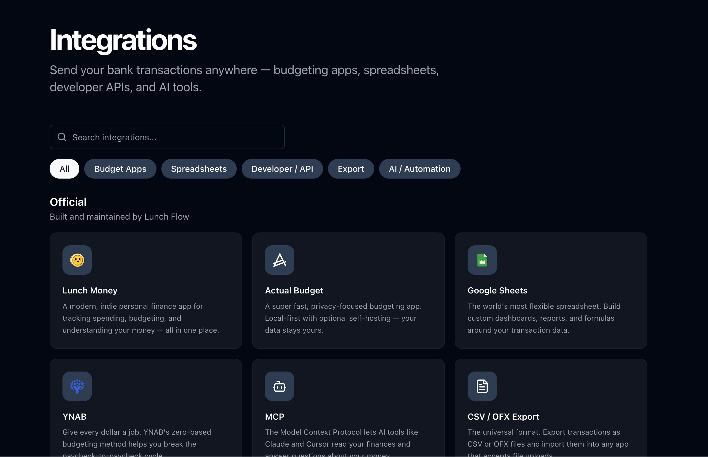 Quite excited about the potential for the improved integration with other apps. Lunch Flow started because someone built a great financial experience (Lunch Money) that I couldnโt fully experience because it didnโt integrate with my bank. I can see many others have great ideas that also die at the open banking hill. Iโd love to solve that.