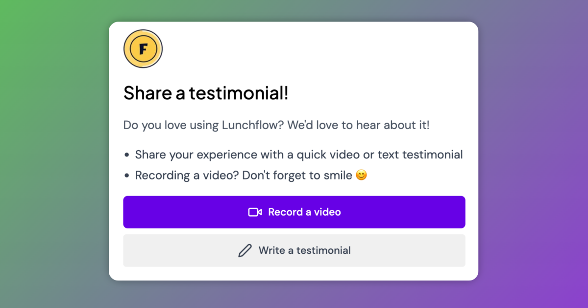 If you have been enjoying Lunchflow and getting value from it, we’d really appreciate you sharing a testimonial with us (it only takes a few minutes!), and we’ll feature it on our website.